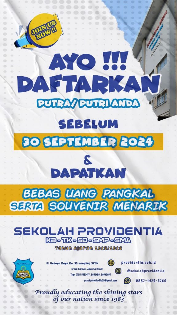 TELAH DIBUKA!!Penerimaan Peserta Didik Baru Sekolah Providentia tahun ajaran 2025/2026.Let’s join us now!